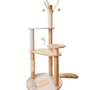 Голяма котешка катерушка на два етажа с драскалка и висящи топчета и мишка за игра. Осигурете на вашата котка забавление и подходящо място за драскане.