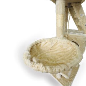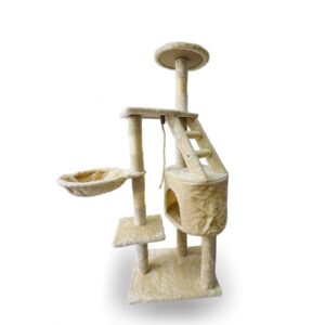 Котешко приключение на три етажа! Това дърво предлага всичко – уютна хралупа за скриване, хамак за сладки дрямки, стълба за катерене и въже за неустоими игри. Идеалното място, където вашето коте може да скача, почива и да се забавлява цял ден!